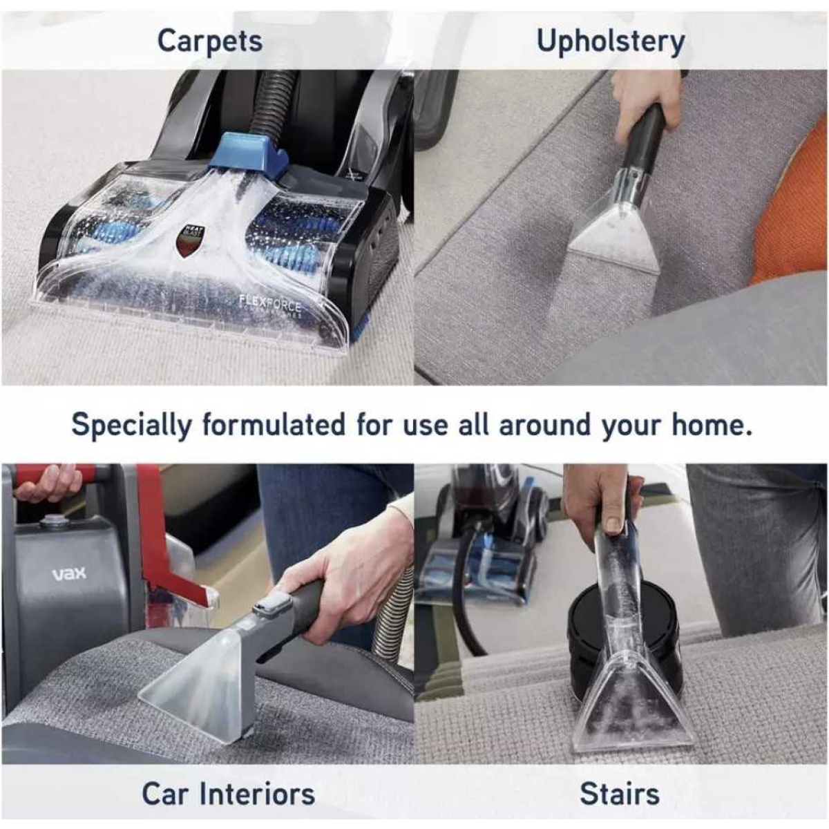 Experts in floorcare, all Vax carpet cleaning solutions are Woolsafe and Cleanseal approved, making them suitable for use even on delicate carpets. Includes Carpetguard protection to keep your carpets looking fresher for longer and OxyLift stain technology to remove embedded and tough stains.