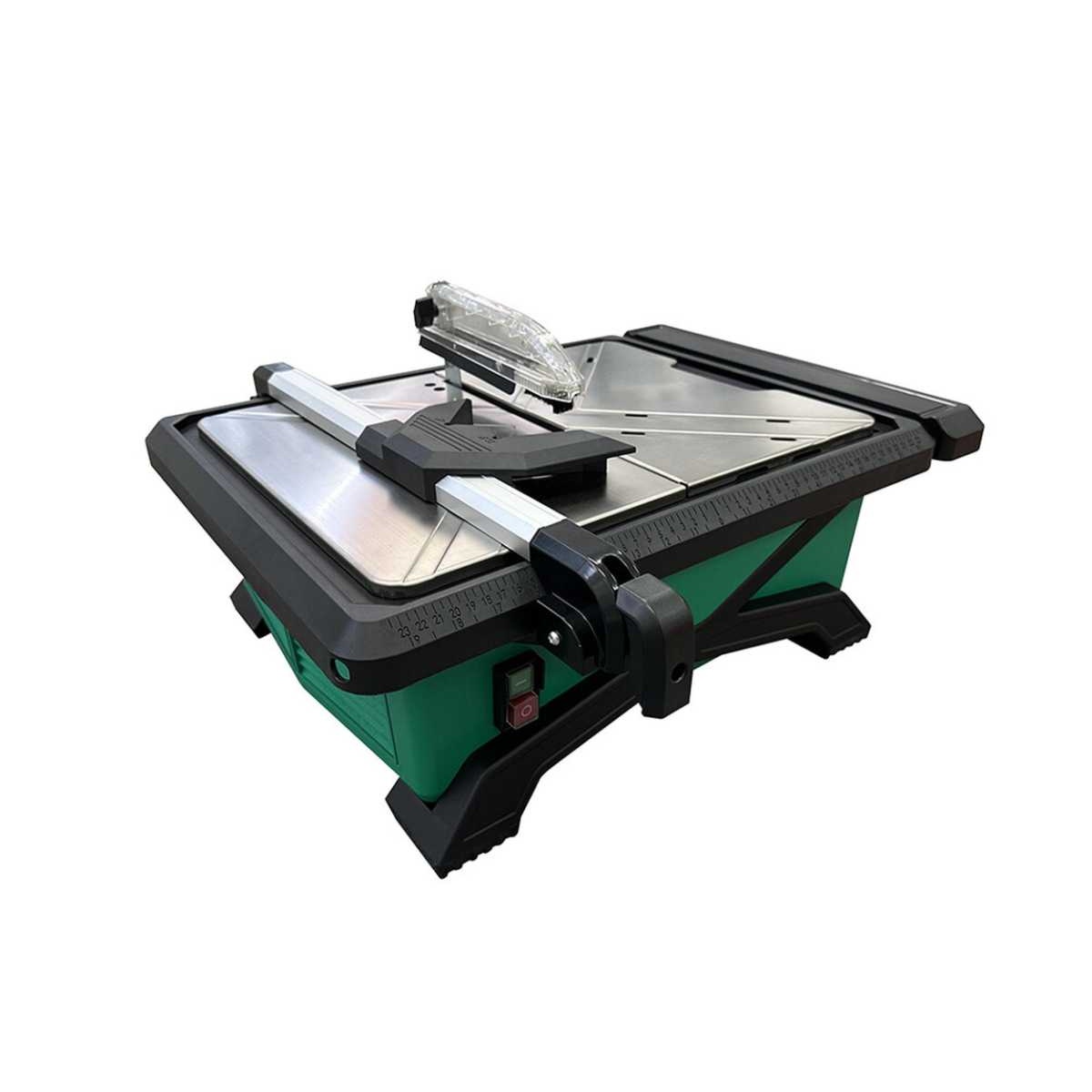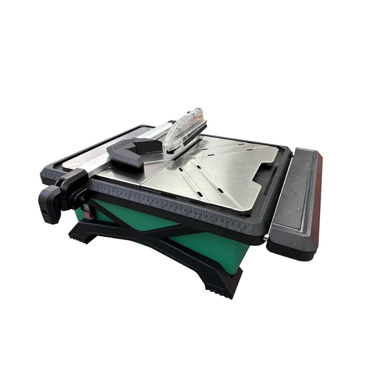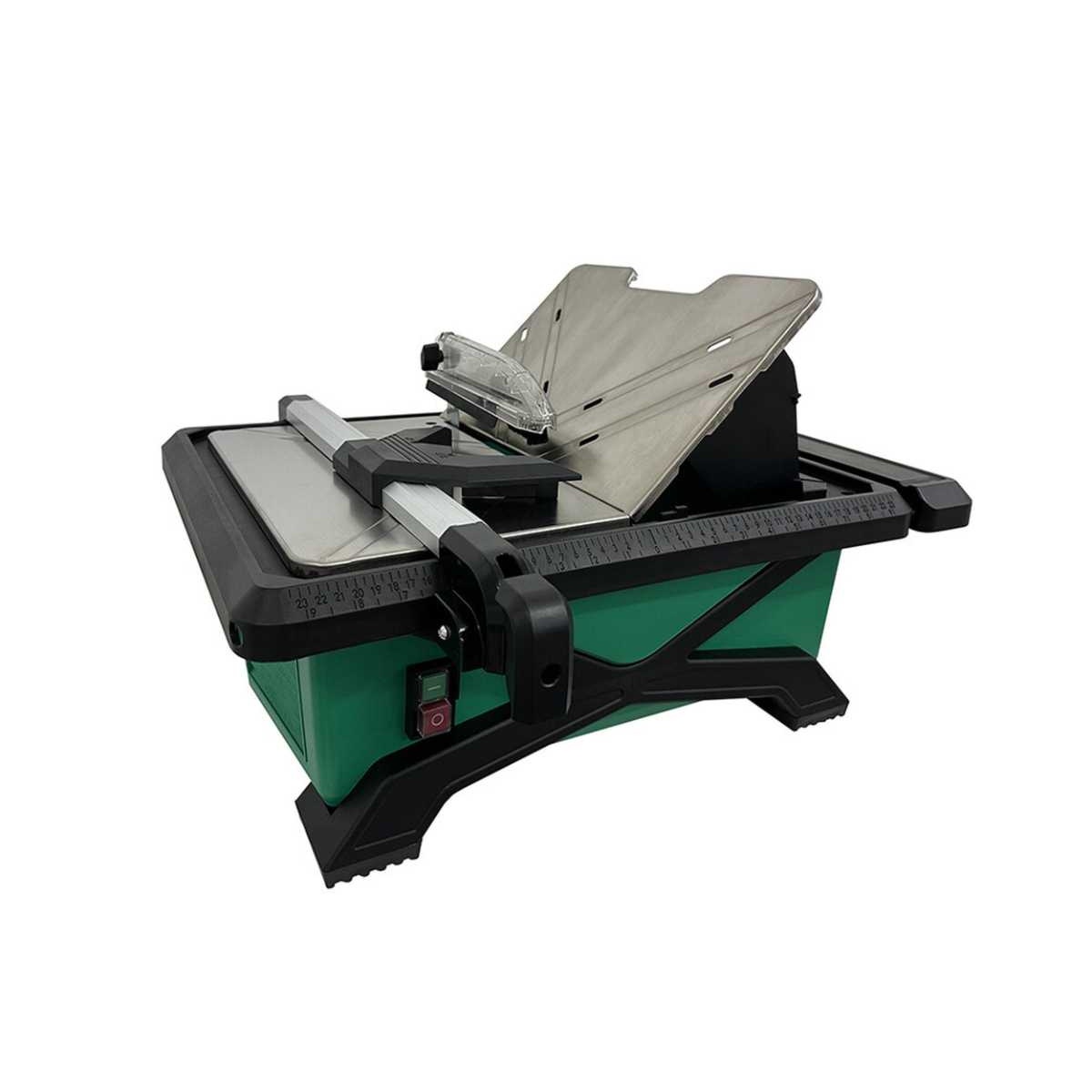 The cutter has a 560W Hi-Torque geared motor which includes a 180mm diameter porcelain blade with a 22.2mm bore. It has a cutting angle of 0-45° with an adjustable rip guide, cutting up to 13mm depths. The extendable table allows for cutting larger format tiles of up to 60cm in length.